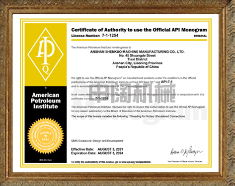 公司于2008年就已通過ISO9001:2008質量管理體系認證。2015年通過了美國石油學會API Spec Q1和API 7-1的質量管理體系的認證;又于2016年初通過了ISO14001環境管理體系和ISO 18001職業健康安全管理體系的認證。